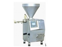 本機是由葉片泵充填、伺服電機驅動、人機界面、微機控制的全自動真空定量灌裝機,配裝有自動扭結機構。既可以灌制肉糜腸、火腿腸、火腿等腸衣制品;又適用于天然腸衣、膠原蛋白腸衣、纖維腸衣等分份扭結。也可用于灌裝各種瓶盒裝產品.本機設有葉片自動補償裝置,分份定量精度可達±2克,傳遞物料輕柔,而且灌裝速度、扭結速度、扭結圈數、每份的重量均可調整。